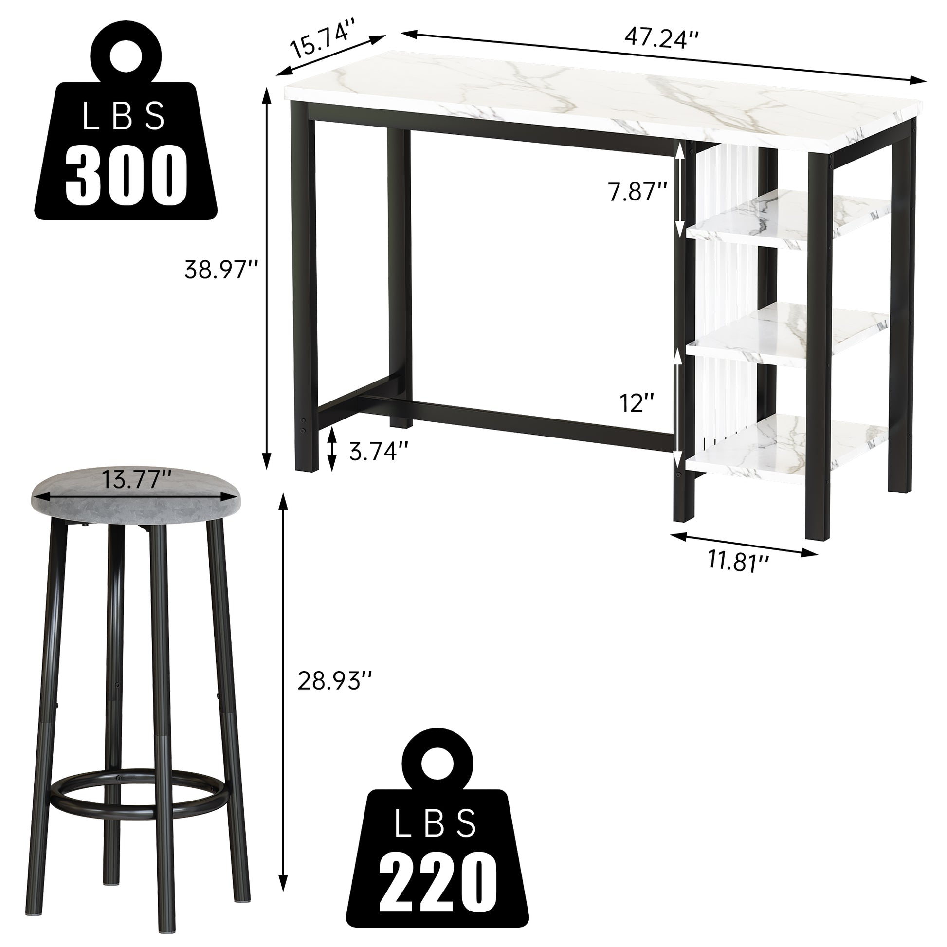 - ✨3-PIECE PUB SET WITH 3 OPEN SHELVES --- This bar table has a total table top length of 47.24 inches. In addition, there are 3 layers of open storage racks under the desktop, which can be used as storage space for you to keep your things organized and save a lot of space.