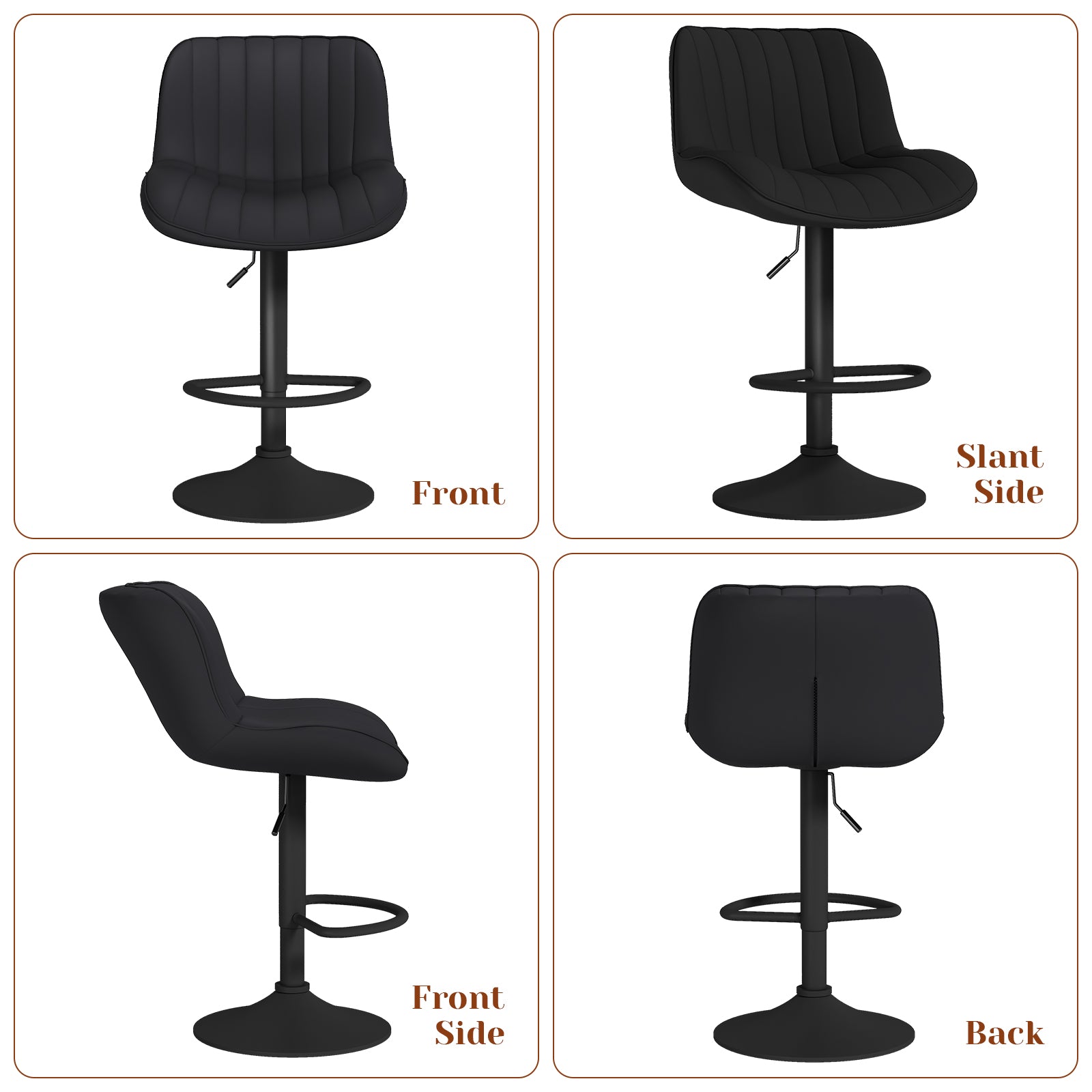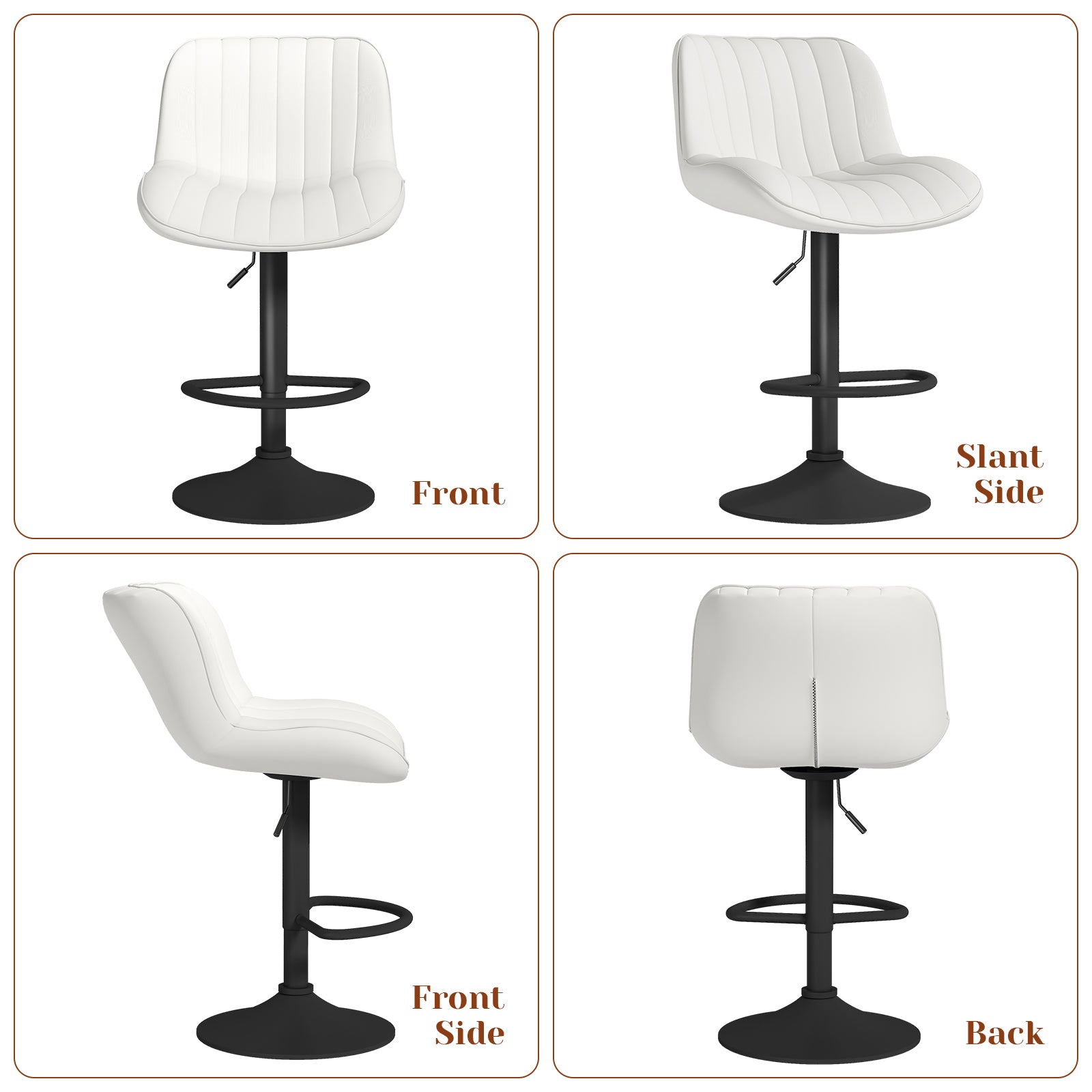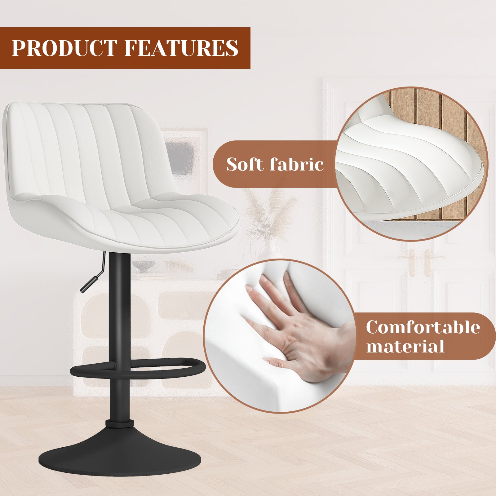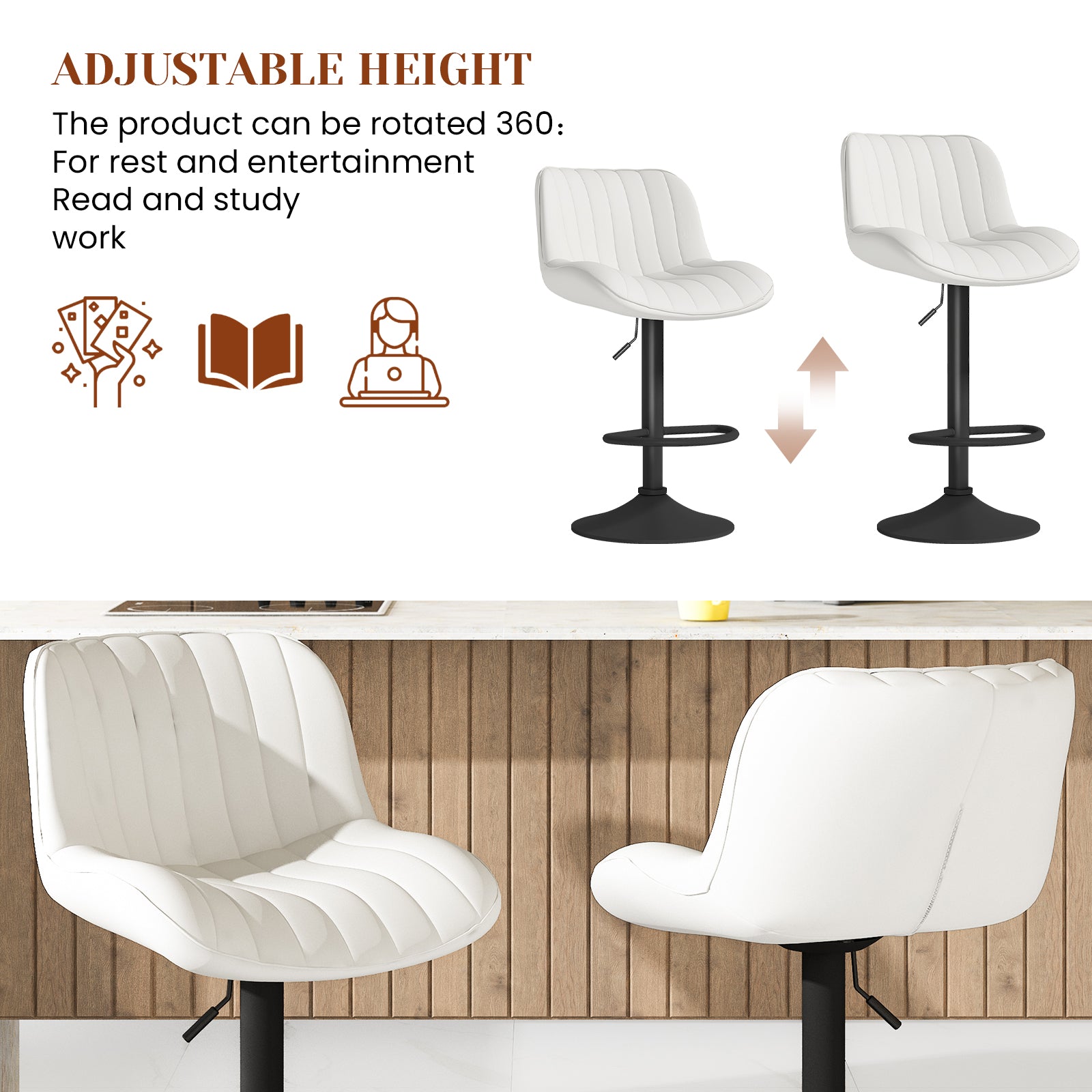 【Upgraded Comfort】Crafted with premium faux leather, this bar stool ensures a luxurious and comfortable seating experience. Its effortless 360-degree rotation, freely adjustable height, and modern aesthetic make it a versatile chair that complements any space with ease.