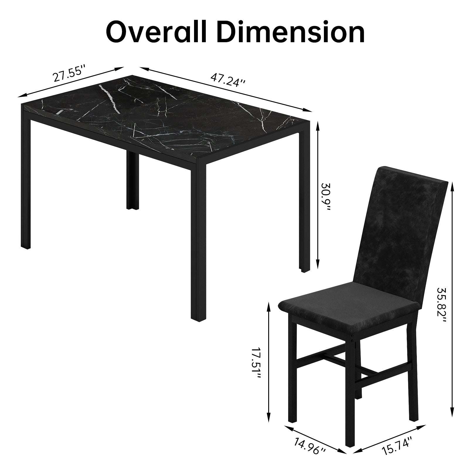 - Luxurious Faux Marble Finish: Elevate your dining experience with our stunning faux marble tabletop dining table set for 4. Offering elegance without the expense, its smooth, waterproof surface ensures easy maintenance and a spotless look every day.