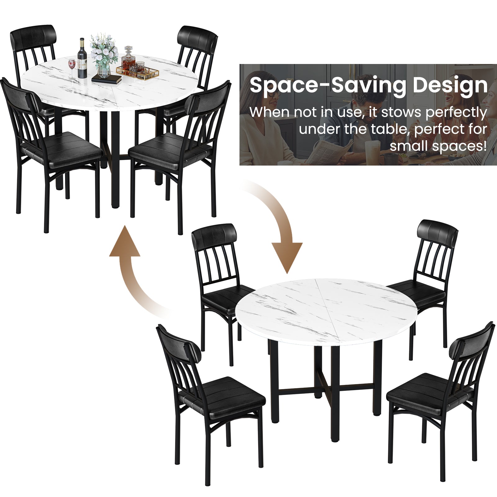 - 🍽【SMALL ROUND DINING SET FOR 4】- Table size: 39"L*39"W*30.9"H, load capacity 250LBS, chair size: 15.7"L*16.5"W*36.6"H, load capacity 350LBS.Tuck the 4 chairs in to take advantage of the compact design that makes this set an ideal choice for dining areas in smaller living spaces such as apartments and more